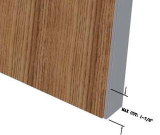 The bottom of the door has a maximum trim amount of 1-7/8”. Exceeding this limit is not recommended. If bottom of door is trimmed, there are 3 options for attaching the bottom sweep.